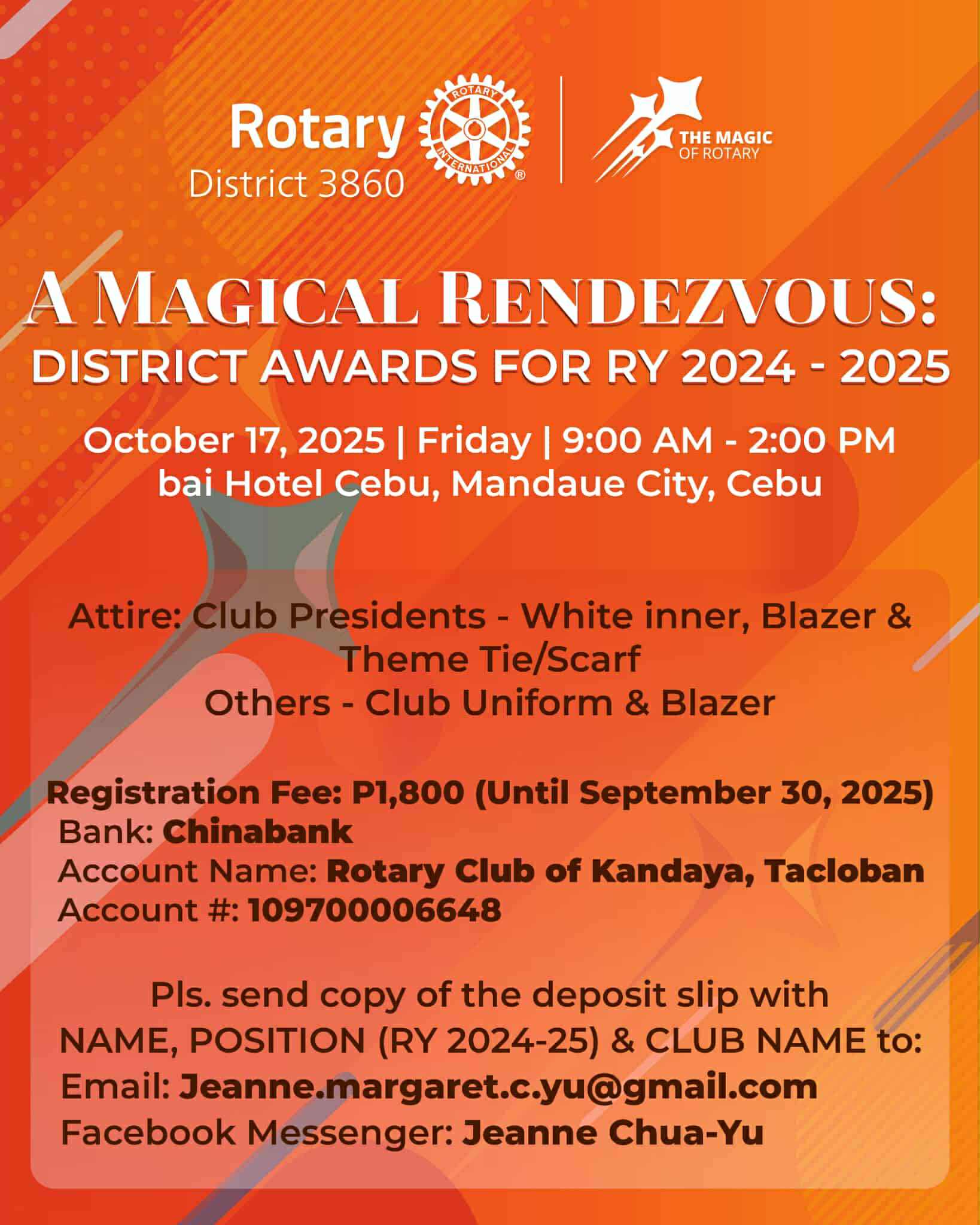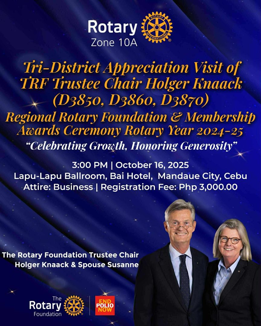 District 3860 is spread across different islands of the Visayas and Mindanao region. From the island of Cebu to the islands of Negros, Bohol, Leyte and Samar island in Visayas to the different regions of Mindanao.